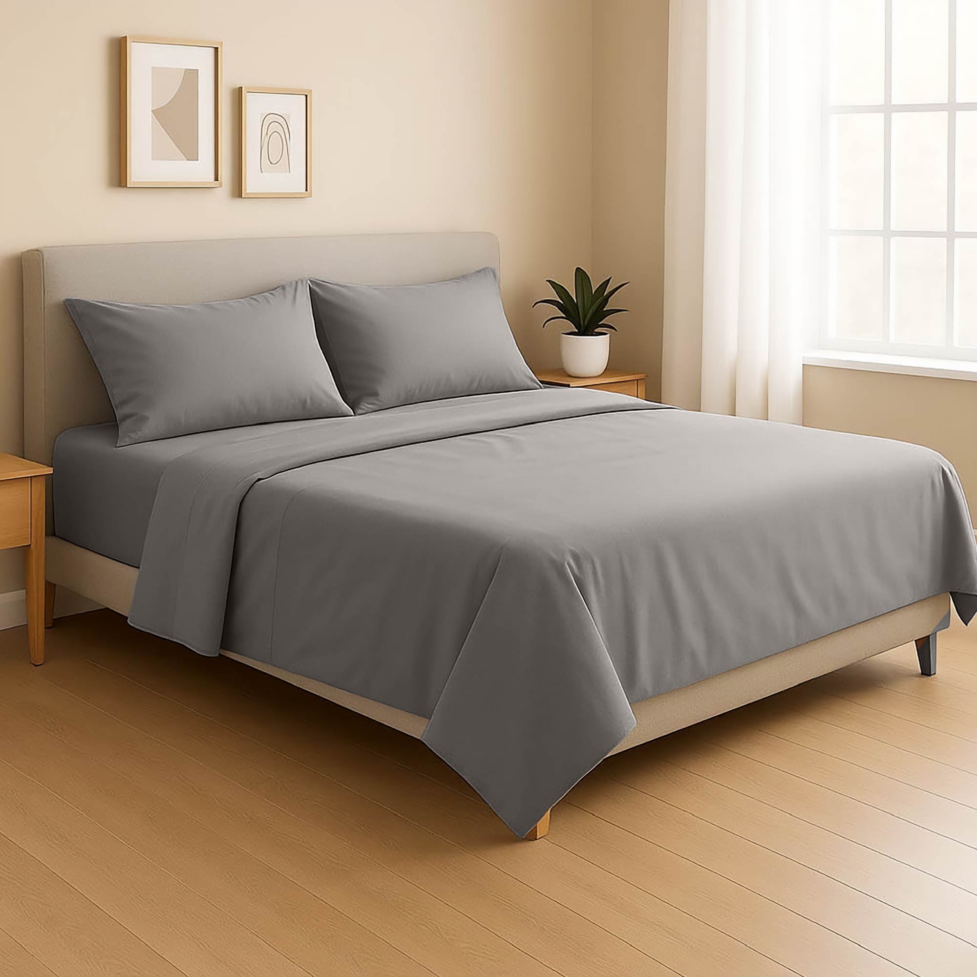 Dimensioni Perfette – Set composto da: lenzuolo sotto 170x195 cm, lenzuolo sopra 240x280 cm e 2 federe 52x82 cm.
