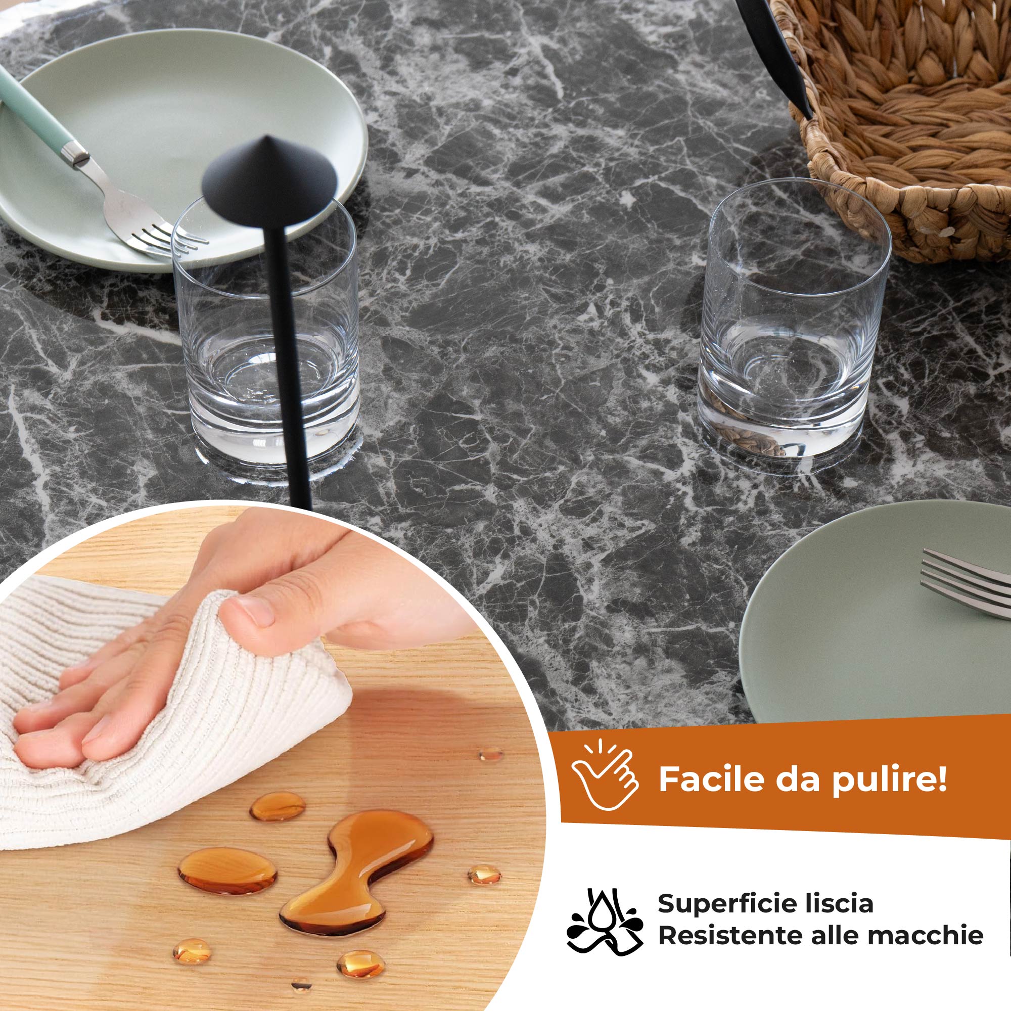 ✔️ Lo spessore è di 1,2 mm, con peso di 1,95 kg/m². La larghezza è di 100 cm e la lunghezza è disponibile a scelta, utilizzando delle forbici avetela possibilità di tagliarlo per adattarsi anche in larghezza al tavolo, qualora non vogliate tagliarlo in larghezza potete sempicemente una volta posizionato sul tavolo modellare i bordi e farli scendere come fosse una comune tovaglia, La pulizia è facilitata: basta un panno umido dopo l’uso e, saltuariamente, un detergente classico.