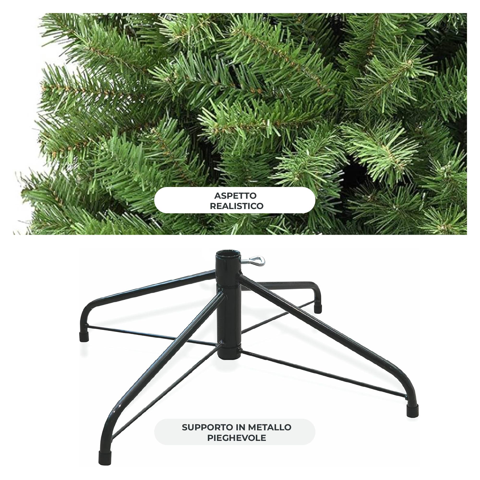 Albero di Natale Verde Artificiale Realistico Rami Folti Modellabili in PVC con Base in Acciaio Facile da Montare